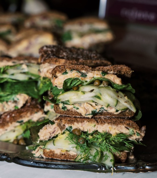 Täytä leivät levittämällä reilusti tahnaa leipien pohjiin ja kansiin. Lisää pohjan päälle salaatinlehdet ja kurkut. Paina leipien kannet päälle ja nauti!